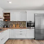 Hosté si také mohou připravit jídlo v kompletní kuchyni. Ve vile je k dispozici vnitřní dvorek s výhledem na zahradu.